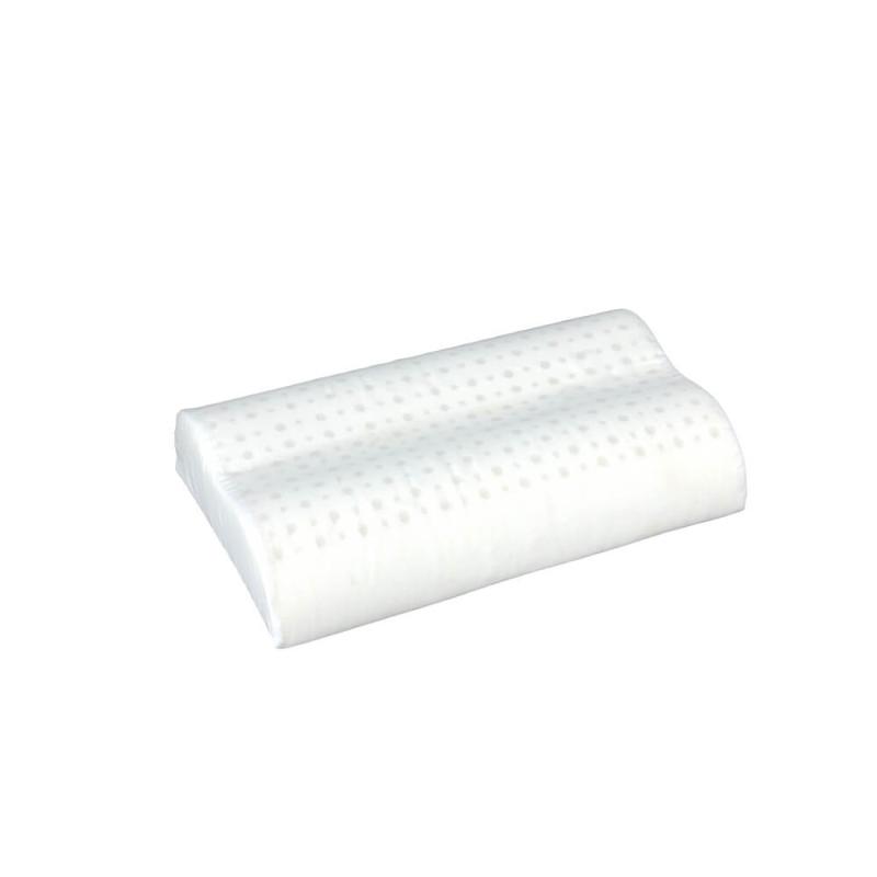 Изработена от 100% Латекс, притежава анатомична форма с ниска и висока страна, следваща естествените извивки на врата и главата. Снабдена с вертикални канали за проветрение и комфортен сън без изпотяване. Калъф от хасе.