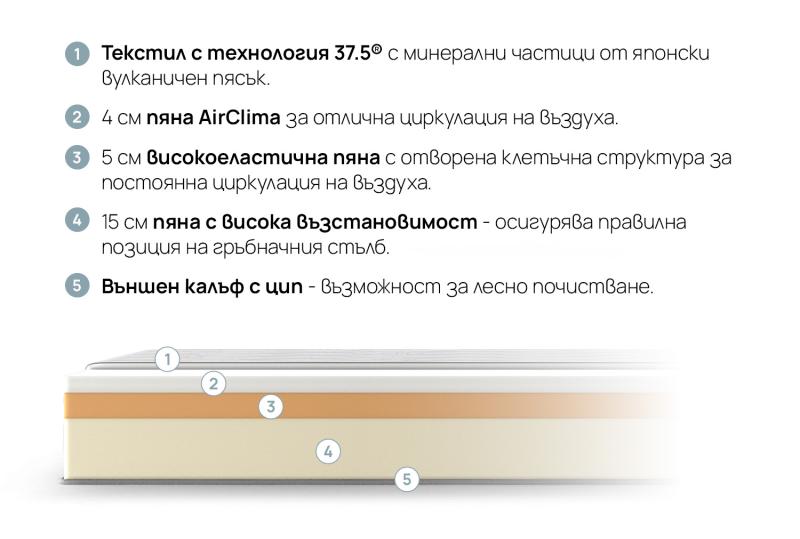 Всички материали, вложени в изработката на матрака, са избрани специално, за да подпомагат терморегулиращите свойства на технологията 37.5®.
