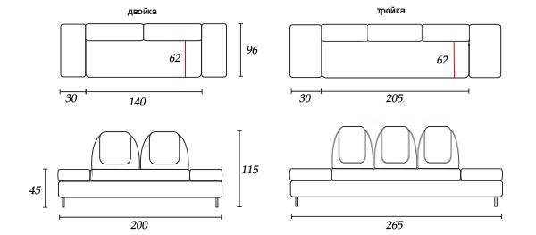 Седална част - еластична HR пяна с висока плътност и сваляеми калъфи с цип