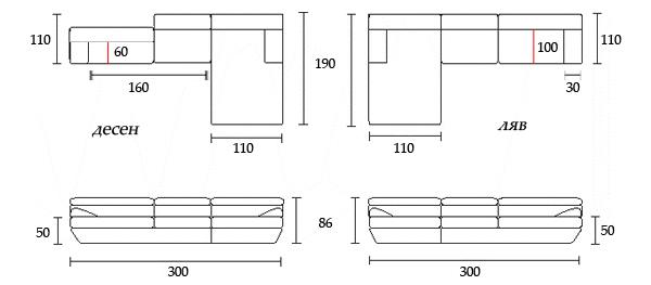 Облегалки - масив, МДФ, ПДЧ, пенополиуретанова пяна с висока плътност. Вграден степенен механизъм регулиращ височината на възглавниците.