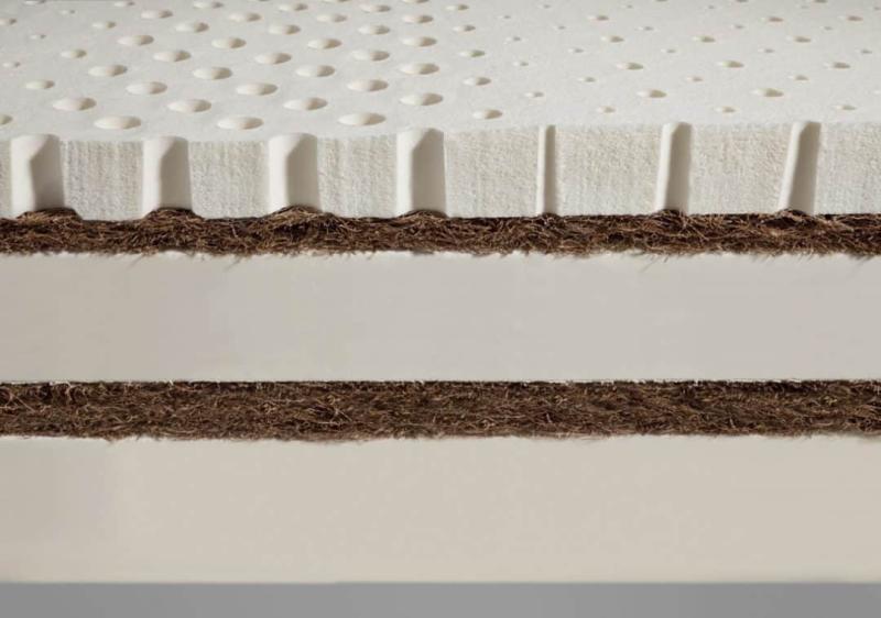 Съставен от три слоя пенолатекс и два слоя кокос за по-добра проветривост и отлична опора на тялото. Обшит с класически антибактериален калъф.
